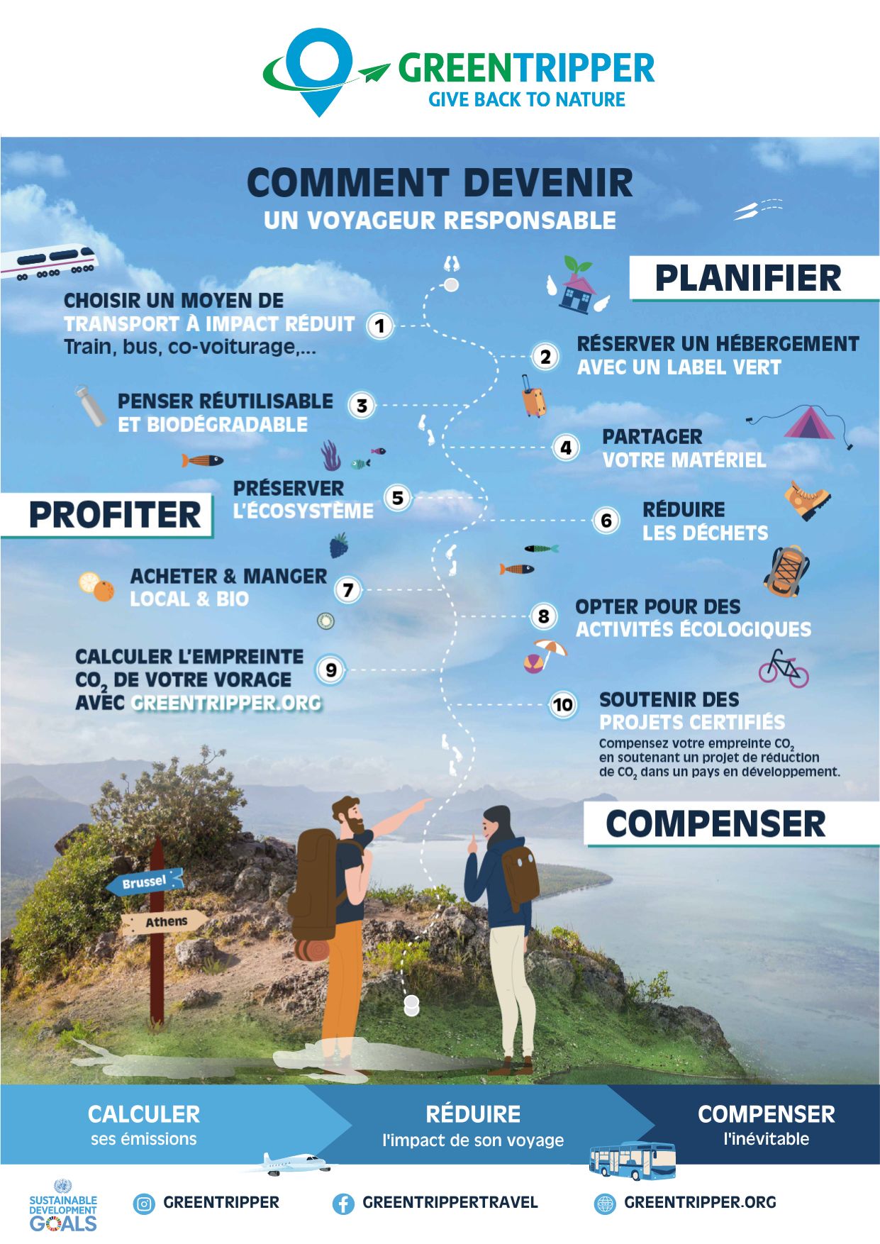 9. Calculez l'impact de votre voyage ici. Il vous suffit de remplir votre trajet sur greentripper.org et choisir un projet que souhaitez soutenir.